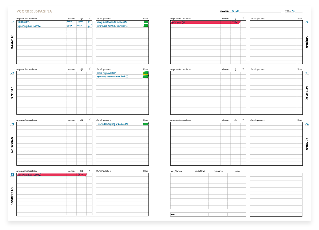 - De overzichtelijke planning helpt uitstelgedrag en stress voorkomen